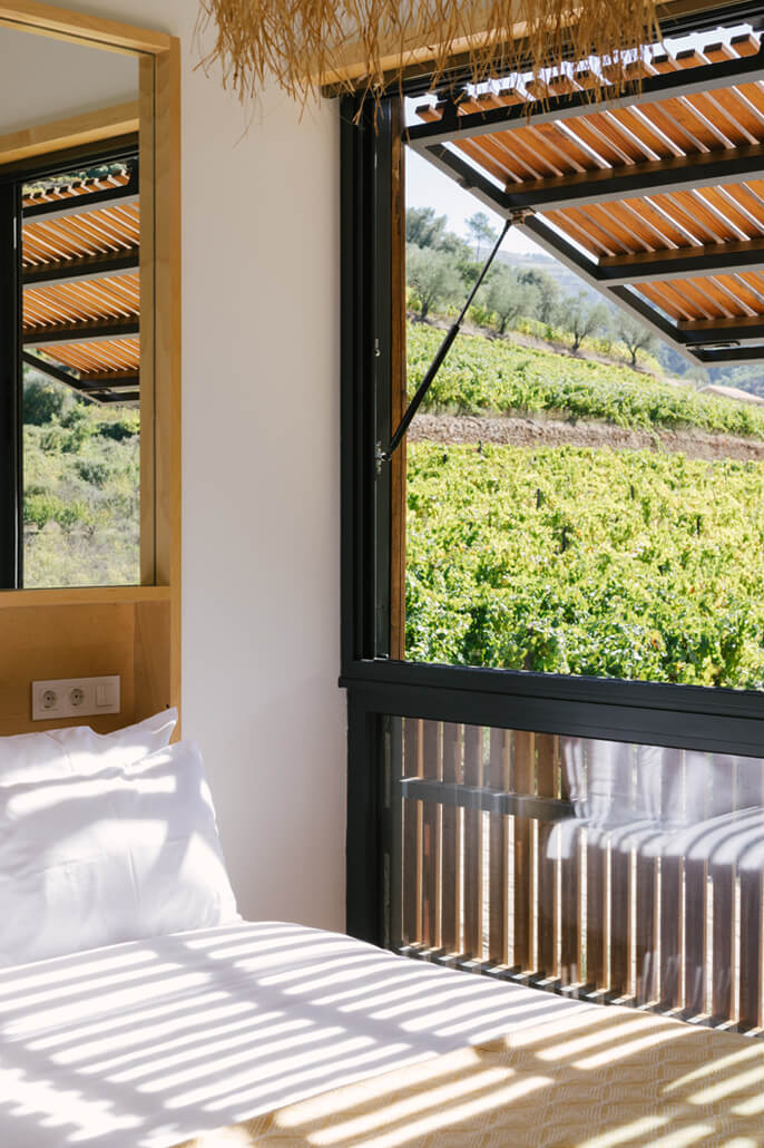 Na noite cerrada, através da aconchegante claraboia que se estende pela Casa do Lagar, conte as estrelas no Espaço belo.