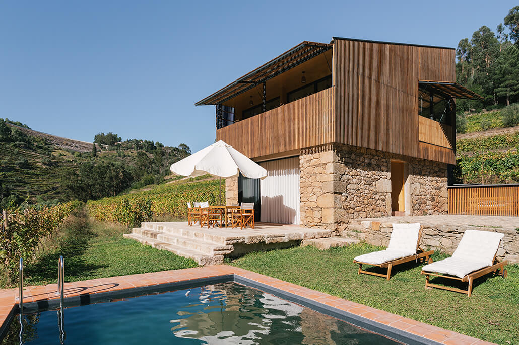 De uma arquitetura renovada mas extremamente cuidada, a Casa do Lagar preservou elementos tradicionais da região, sendo a madeira aquele que tem destaque na sua fachada.